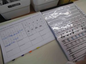 Ils apprennent aussi à écrire correctement les chiffres qu’ils utiliseront ensuite sur des files numériques à trous.