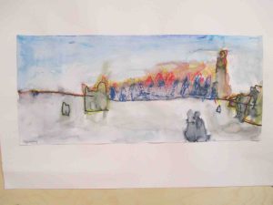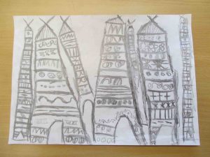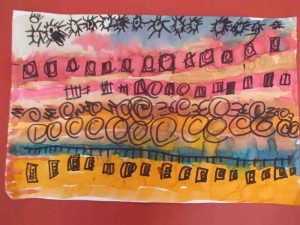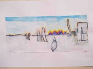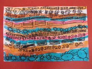 Les tableaux commencé au musée de la Piscine et terminés en classe sur le désert: