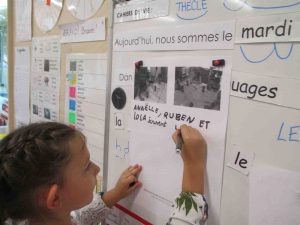 Cette activité leur permet aussi de se rendre compte qu’ils sont capables d’écrire des mots et leur donne confiance pour les futures activités d’écriture de la classe…