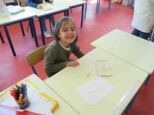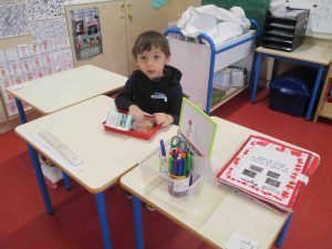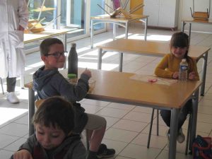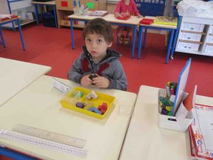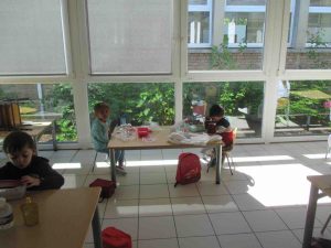 Après le retour en classe dans les mêmes conditions que le départ pour la récréation avec le passage aux toilettes, ils ont pu commencer les activités de la journée!