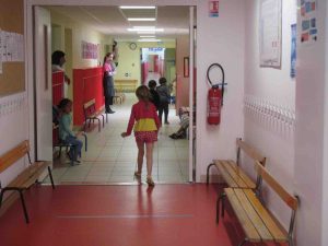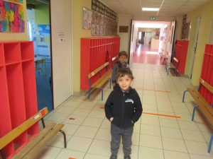 À 11h30, c’est sur les bancs dans le couloir avec les autres maîtresses et les ATSEM qu’ils ont attendu que Mme VARLET les appelle pour descendre rejoindre leur parent.