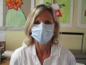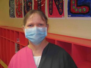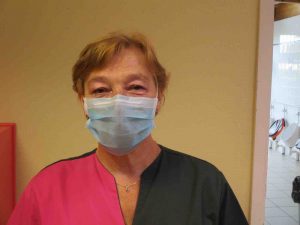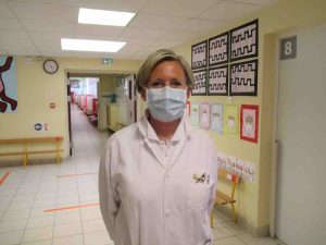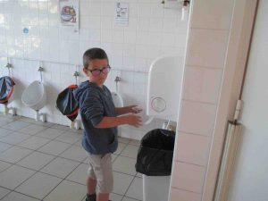 Passage aux toilettes avec lavage des mains sous le regard attentif de Sabine, Ourida, Emma nos ATSEM ainsi que Betty notre agent, elles aussi masquées!!! Elles étaient là aussi pour superviser le déplacement dans le couloir et vérifier le respect de la distanciation!